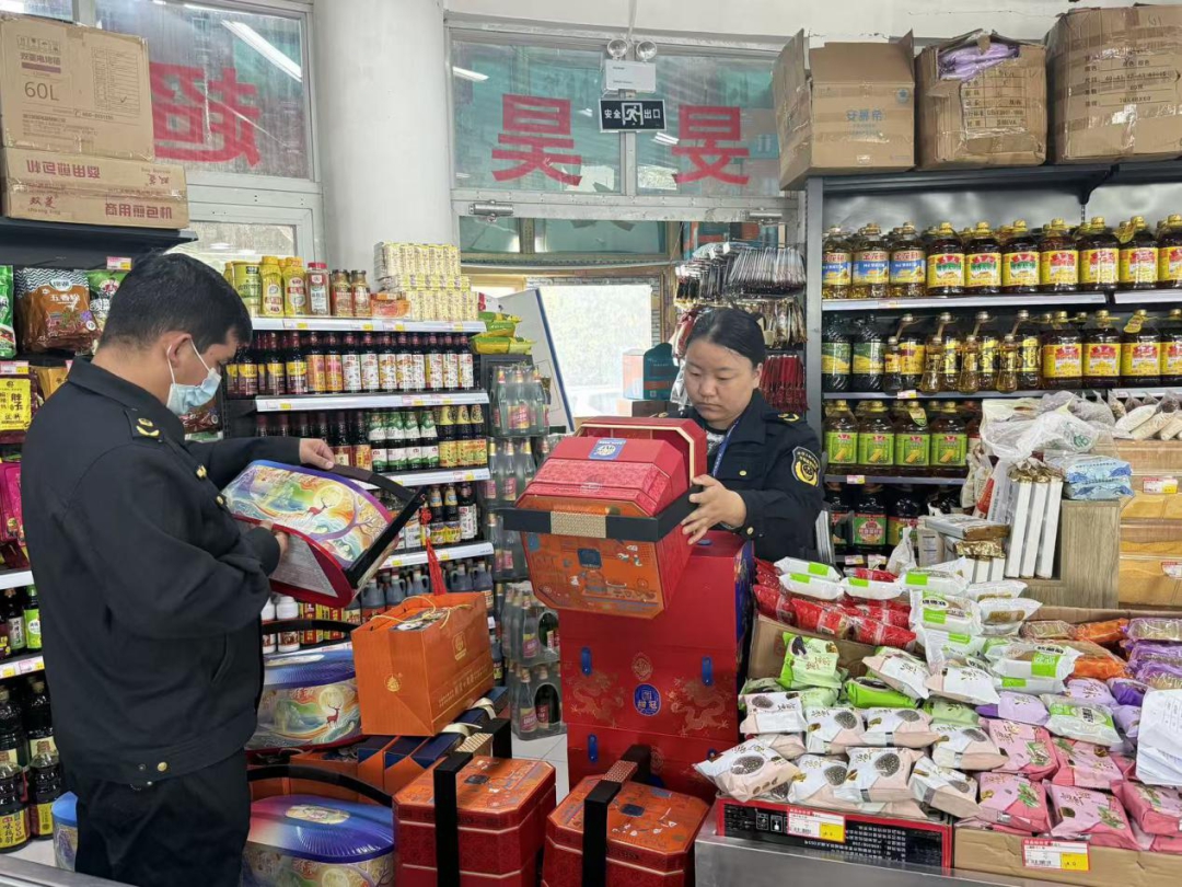 “月饼的生产日期、保质期要核对清楚,水果的新鲜度也要每天检查!”走进县城的商超,县市场监督管理局工作人员聚焦节日消费特点,以月饼、糕点、粮油、肉制品、乳制品、酒类、饮料等节令性食品经营单位为核心,严查经营主体资格,仔细查看食品包装标识、从业人员健康证、进货查验记录、肉制品检验检疫合格证明,以及食品生产日期、保质期、贮存条件等,并督促经营者严格落实食品安全主体责任,严防过期、“三无”食品违规销售,确保食品来源正规、质量可靠。同时,县市场监督管理局还组织检测机构对消费量大、风险较高的月饼、生鲜肉品、水产品等重点品种开展专项监督抽检,为食品安全监管提供有力支撑。