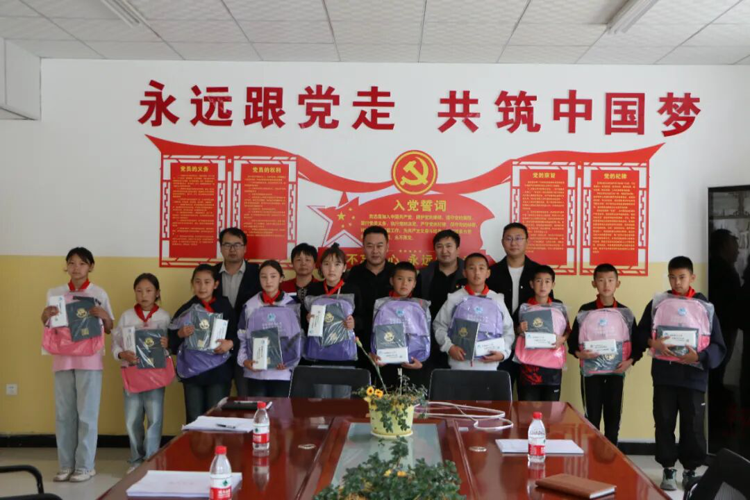 图为:在库兰萨日克乡中心小学为品学兼优的学生发放学习大礼包