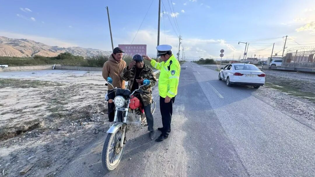“以前总觉得戴头盔麻烦,今天交警同志给我们讲了几个没戴头盔受伤的例子,我这才明白‘头盔是保命的’不是空话!”11月21日,在阿合奇县乡村道路旁,骑电动三轮车的居民拿着交通安全宣传册,对身边的交警连连点头。