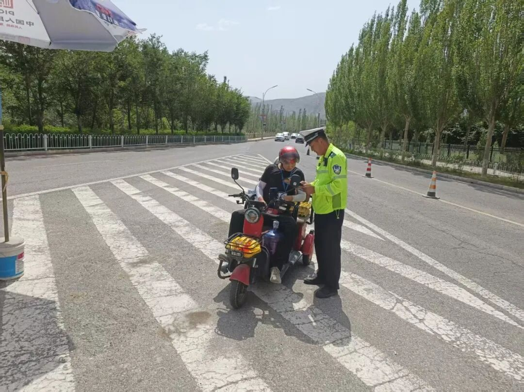宣传中,交警既“讲法规”也“做示范”,看到骑摩托车的群众头盔佩戴不规范,民警当场帮其调整卡扣;遇到电动三轮车违法载人的情况,先耐心讲解风险,再协助转运乘客。“农村道路窄、车辆杂,多一句提醒、多一次示范,就能少一分危险。”参与宣传的交警说:“我们就是要把‘安全种子’种到每个人心里。”