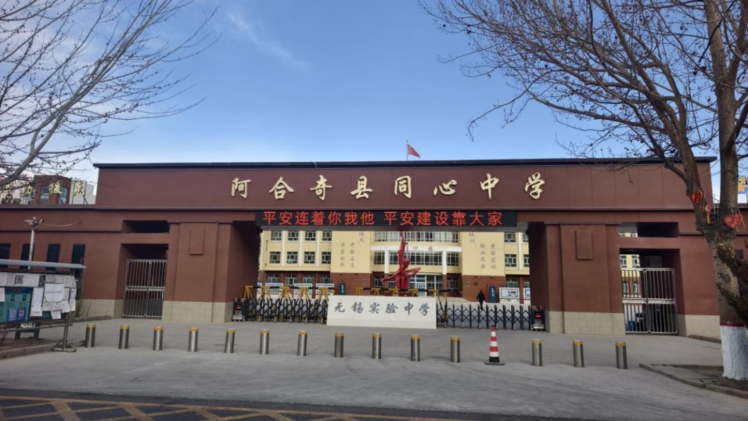 图为:无锡援疆资金支持阿合奇县同心中学新校门打造