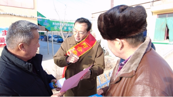 图为:宣传员为群众讲解社保缴纳政策