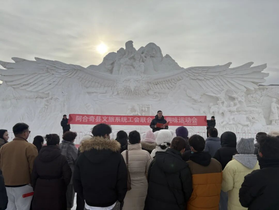 近日,阿合奇县文旅系统所属单位3个基层工会携手联动,精心举办“冰雪趣味运动会”。本次运动会以“猫冬不猫,强身健体”为主题,以“工作繁忙,劳逸结合”为口号,旨在引导干部职工在紧张忙碌的工作之余,走出室内、走进冰雪,通过户外运动释放压力、增进情谊、强健体魄,进一步丰富职工精神文化生活。活动吸引了县文旅系统50余名干部职工踊跃参与,设置个人、团队两大类共8个特色比赛项目,现场氛围热烈高涨、暖意融融。