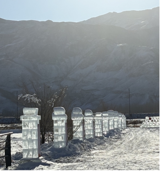 图为:迎宾走廊两侧的冰柱