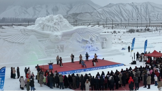 “快看!这‘石榴籽冰雕’太有意思了,咱们一起合张影!”冬日的阿合奇驯鹰文化冰雪乐园,欢呼声、笑声此起彼伏。来自各族各界的群众穿梭在晶莹的冰雪世界里,在“迎宾柱”下驻足、在非遗雪雕前打卡、在游乐项目中携手,让寒冷的冬日洋溢着浓浓的民族团结暖意。
