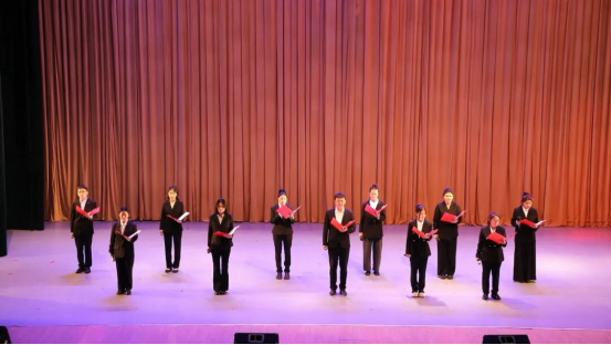 朗诵节目接连上演。《我爱上班》以轻松诙谐的语调,抒发了基层工作者爱岗敬业、默默奉献的精神风貌,台下掌声笑语不断;《少年中国说》则以铿锵有力的诵读,激荡起新时代青年立志成才、报效家国的豪情,令人振奋动容。