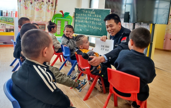 近日,新疆出入境边防检查总站克州边境管理支队黑牙克恰提边境派出所民警走进辖区幼儿园,开展“防拐防骗知识宣讲”主题活动,用专业守护孩子们健康成长。