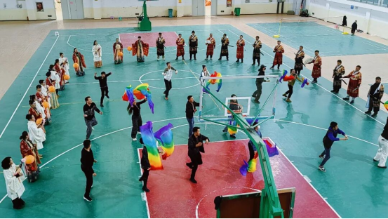 排练现场,虽然天气依旧寒冷,但丝毫没有阻挡演员们的高涨热情。大家精神饱满、神采飞扬,认真打磨每一个动作、每一组队形,反复排练、精益求精,力求以最饱满的状态、最规范的表演,展现阿合奇各族群众昂扬向上、团结奋进的精神风貌。