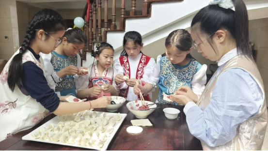 无锡市东鿍实验学校学生金悦尔笑着说:“一起跟我妈妈包饺子,做粽子,很开心能和新疆小伙伴结对,邀请他们来我家里做客。一起围坐吃饭、畅聊家常,一起感受传统民俗、学习手工技艺,这段时光美好又难忘。我们是手足相亲的兄弟姐妹,愿我们常来常往,让锡奇两地的少年情谊永远绵长。”
