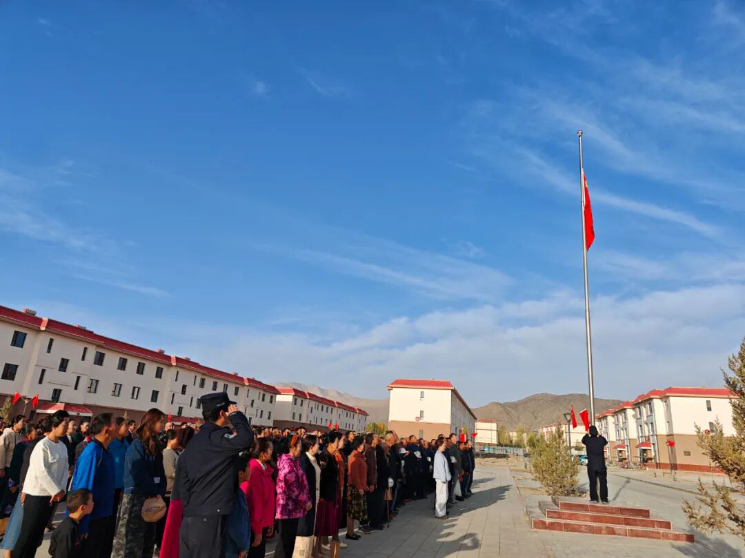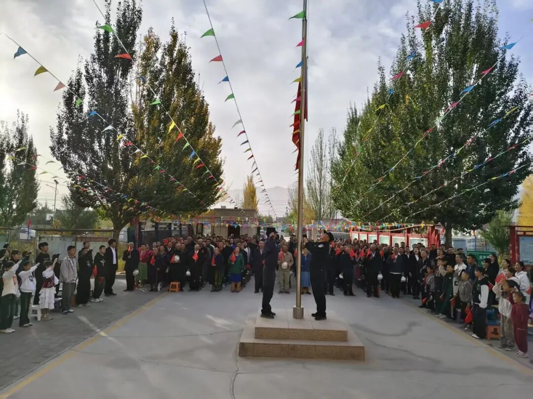 图为:库兰萨日克乡举行升旗仪式