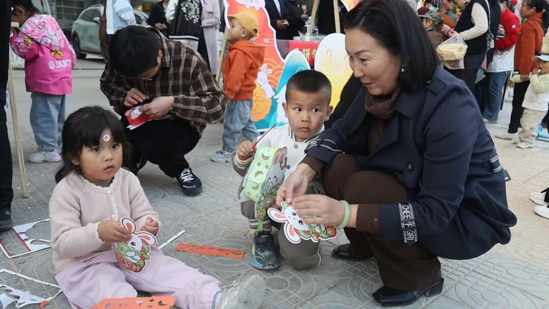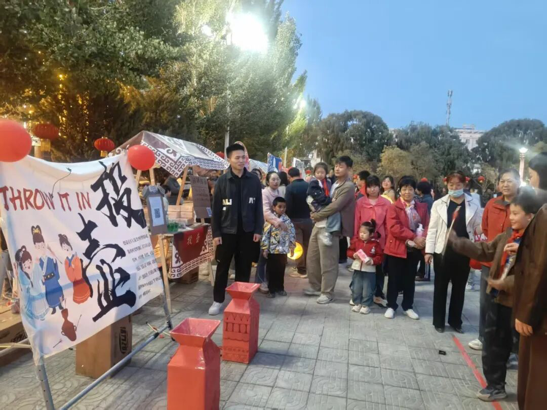 傍晚,广场化作充满童趣与温情的“热闹集市”,四大特色区域吸引各族群众沉浸体验:“笔墨丹青颂山河”展区以书画摄影展现阿合奇县发展变迁与城乡活力;“光阴的故事”专区设亲子怀旧空间,家长与孩子手写书信传递温情;“觅趣乐逍遥”区域里,猜灯谜、投壶等游戏轮番上演,欢声笑语不断;“指尖上的传承”环节中,群众亲手制作漆画,沉浸式感受传统文化魅力。文艺表演将氛围推向高潮:合唱《社会主义好》礼赞新时代,柯尔克孜族史诗《玛纳斯诞生记》彰显民族文化底蕴,传统民族舞蹈尽显少数民族热情豪迈;互动环节中,群众共跳圆圈舞拉近距离,干部领唱《我爱你中国》引发全场合唱,爱国情怀激荡全场。