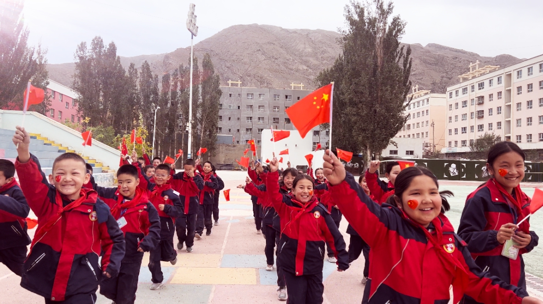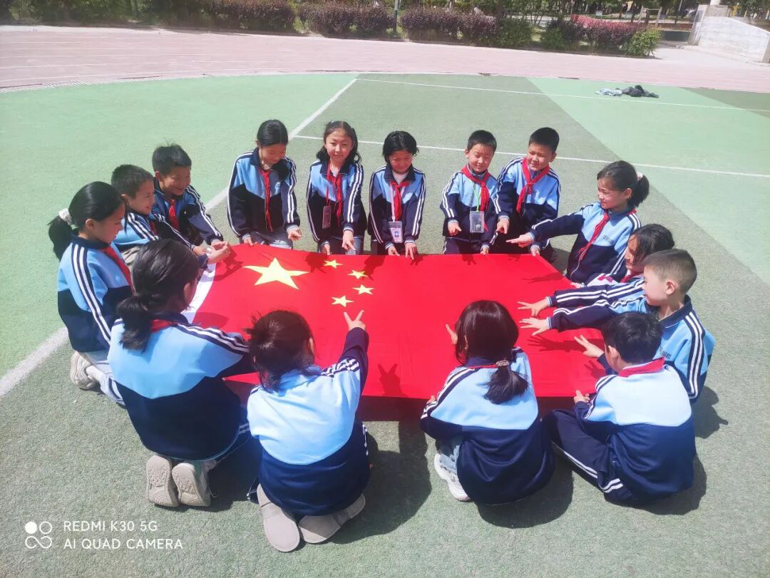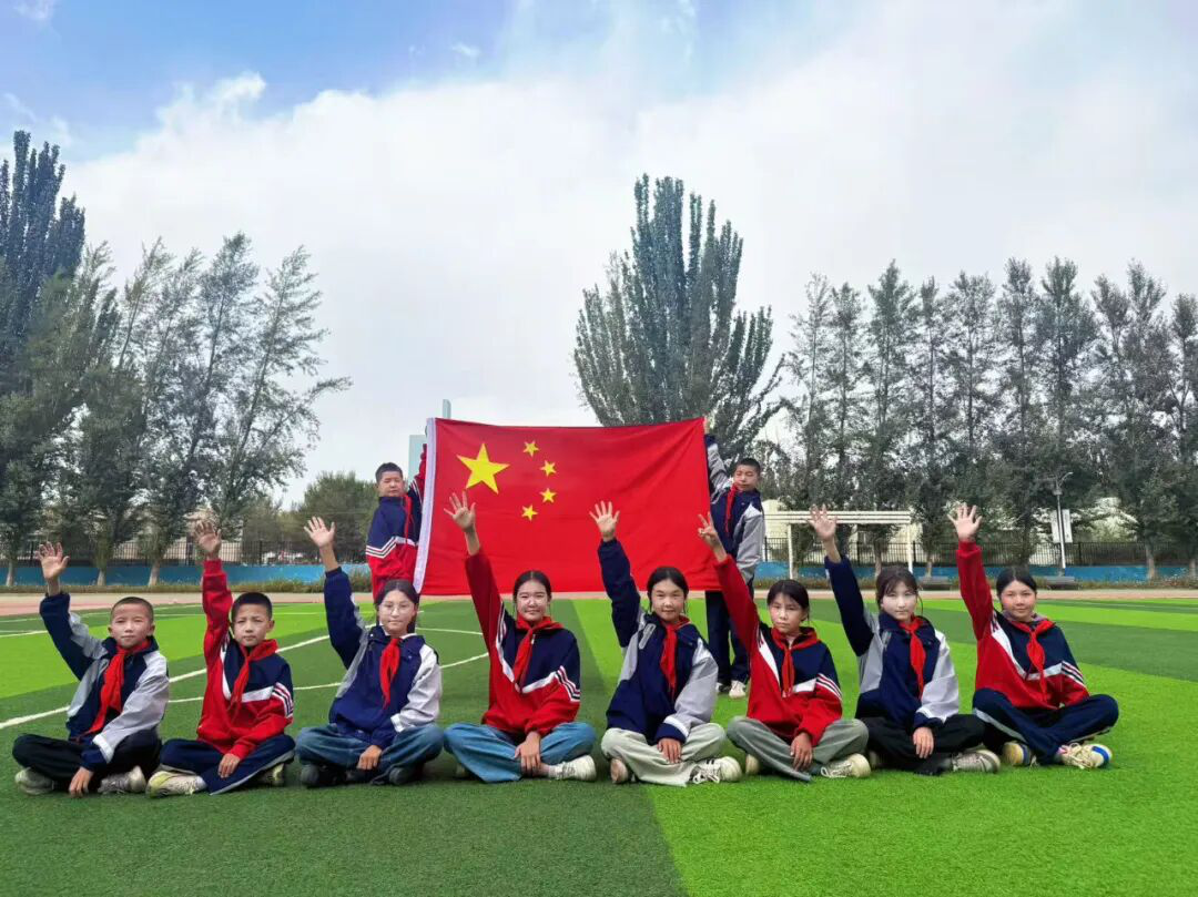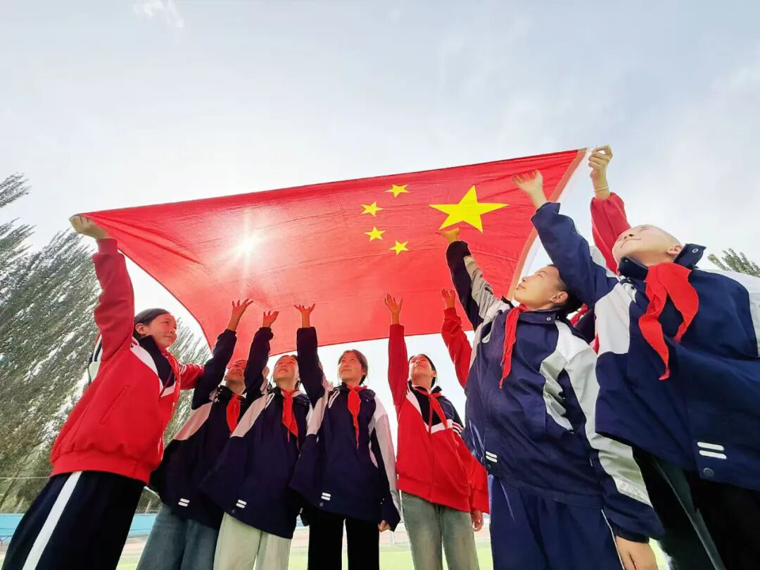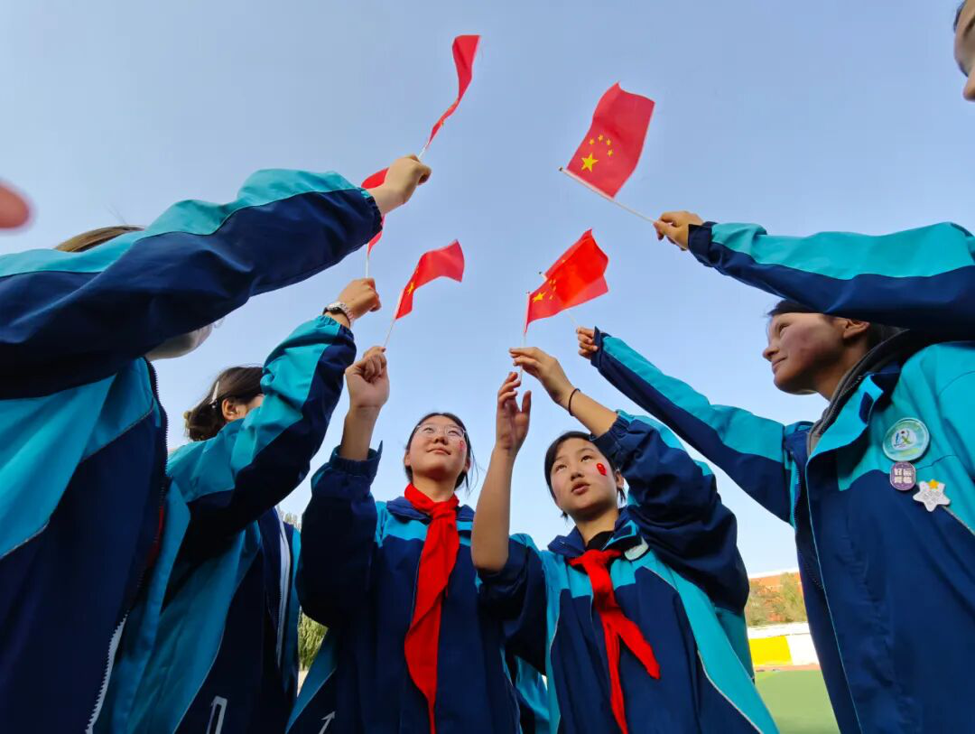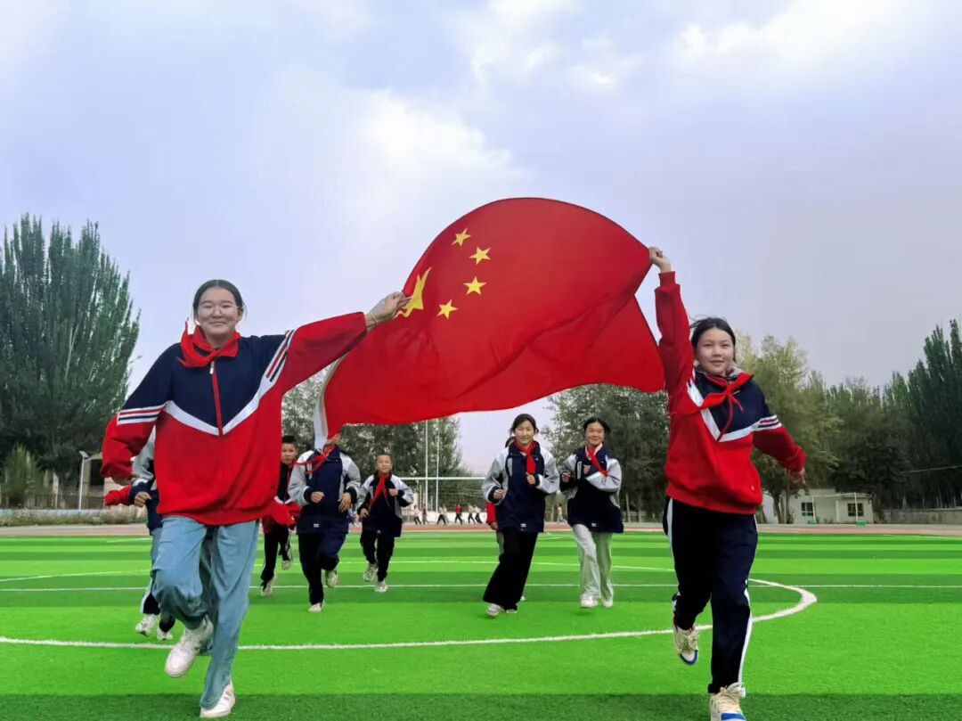 晨光里,教学楼前五星红旗升起。我们着校服与这抹中国红并肩,为祖国76华诞献青春礼赞。