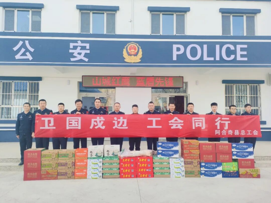 县总工会慰问组一行专程来到恰提铁列克边境派出所,开展“卫国戍边·工会同行”新春慰问活动,为坚守在边境一线的全体民警送来慰问品与节日祝福,让凛冽寒风中的警营涌动着浓浓的温情。