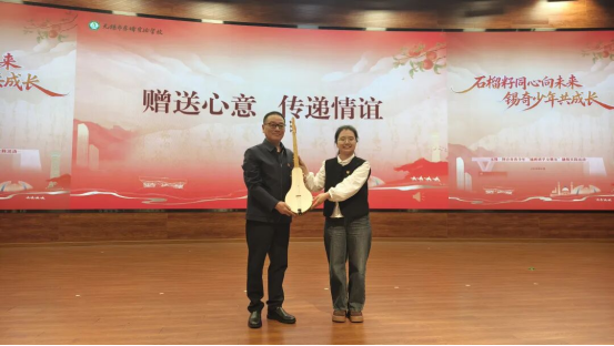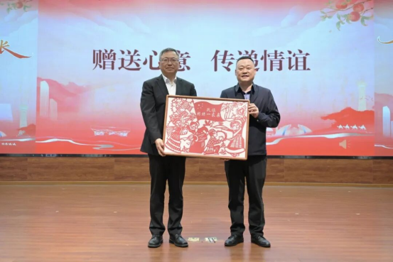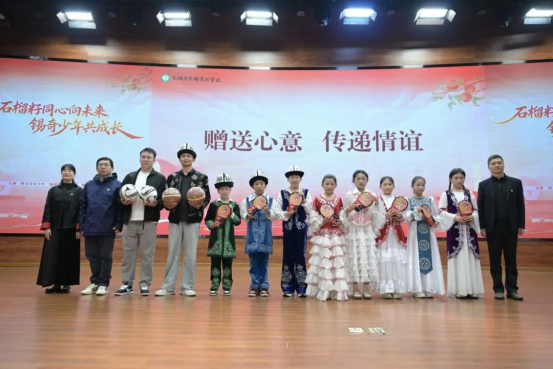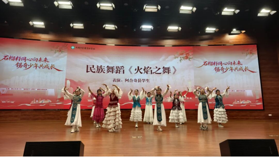 在随后的环节中,《火焰之舞》《竹三尺》等舞蹈活力上演,两地学生代表相继登台,分享研学中的点滴收获与真挚友谊。互赠礼物环节成为全场的温情高潮——两地领导互赠剪纸、研学礼包、柯尔克孜族传统乐器库姆孜以及体育器材,每一份礼物都承载着跨越地域的深情厚谊。
