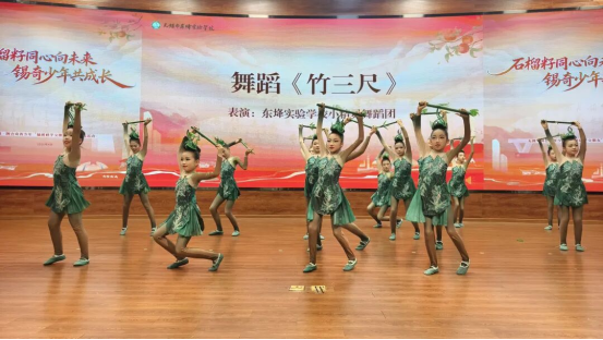 活动伊始,现场播放了东鿍实验学校百廿年宣传视频,悠扬的画面与旋律迅速拉近了彼此的距离。随后,研学回顾视频将一幕幕两地少年同窗学习、并肩游玩的温馨画面呈现在大家眼前——那些一起上课、一起欢笑的瞬间,勾起了全场最美好的回忆。无锡市东鿍实验学校校长登台致辞,热情欢迎远道而来的阿合奇研学团师生,为两地青少年结下的深厚情谊感到由衷欣慰,并寄语孩子们以此次研学为纽带,常来往、常交心,争做民族团结的践行者。紧接着,欢快的歌舞表演《螃蟹歌》登场,灵动的舞姿和熟悉的旋律瞬间点燃了现场氛围。