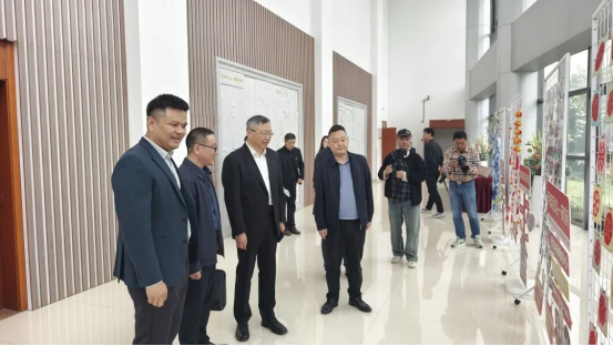 图为:相关领导参观无锡・阿合奇学生研学一周活动成果展