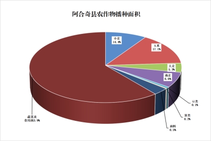 全年农作物总种植面积8.3612万亩,比上年增长1.23%。粮食种植面积2.9403万亩,下降5.6%。其中,小麦种植面积0.7739万亩,下降19.6%;玉米种植面积1.2279万亩,增长2.06%。油料种植面积0.0216万亩,下降51.6%;蔬菜及食用菌种植面积0.2627万亩,苜蓿及牧草种植面积5.0819万亩。