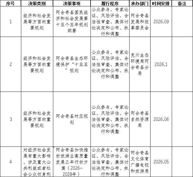 附件:阿合奇县人民政府2026年度重大行政决策事项目录