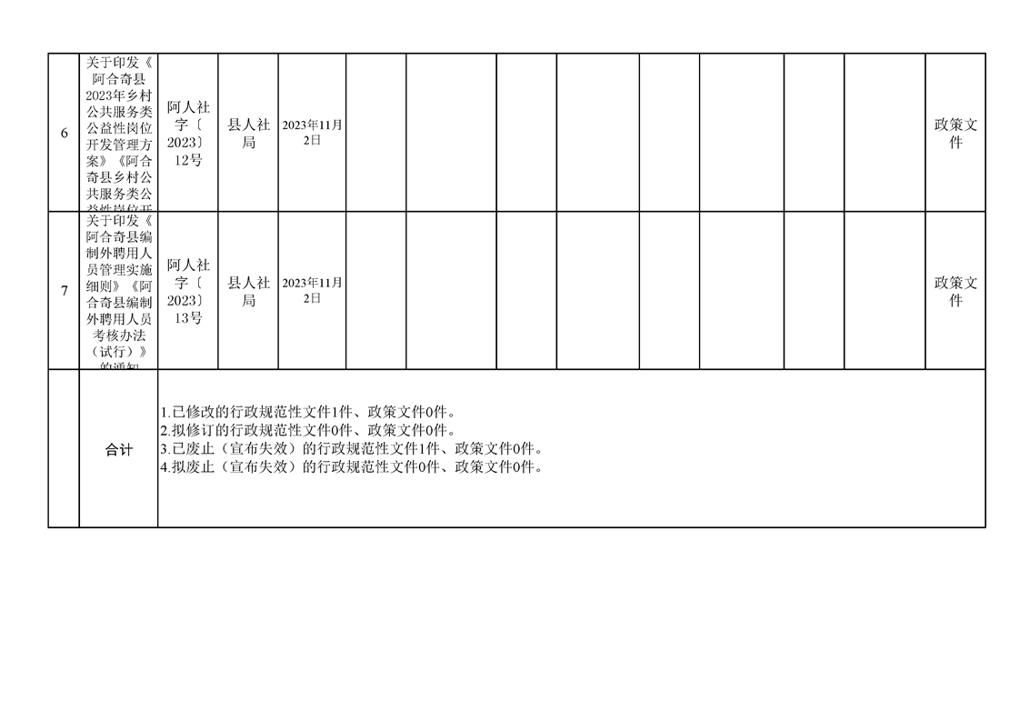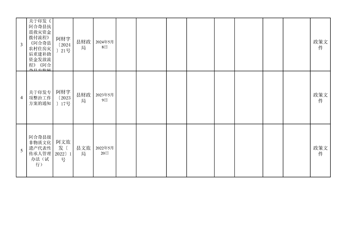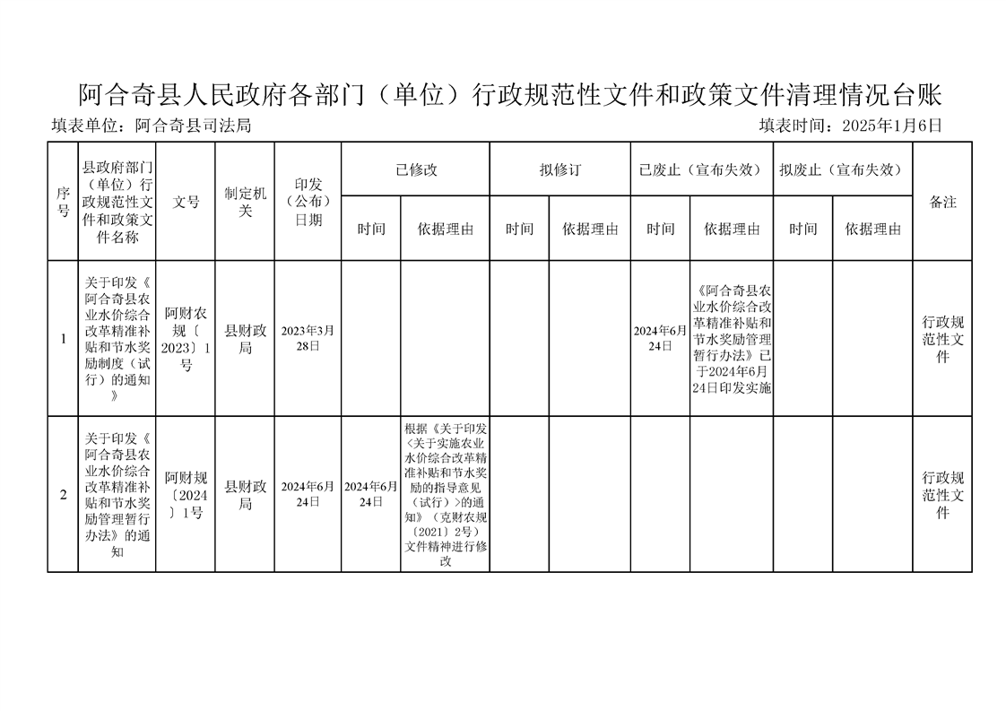 阿合奇县人民政府各部门(单位)行政规范性文件和政策文件清理情况台账