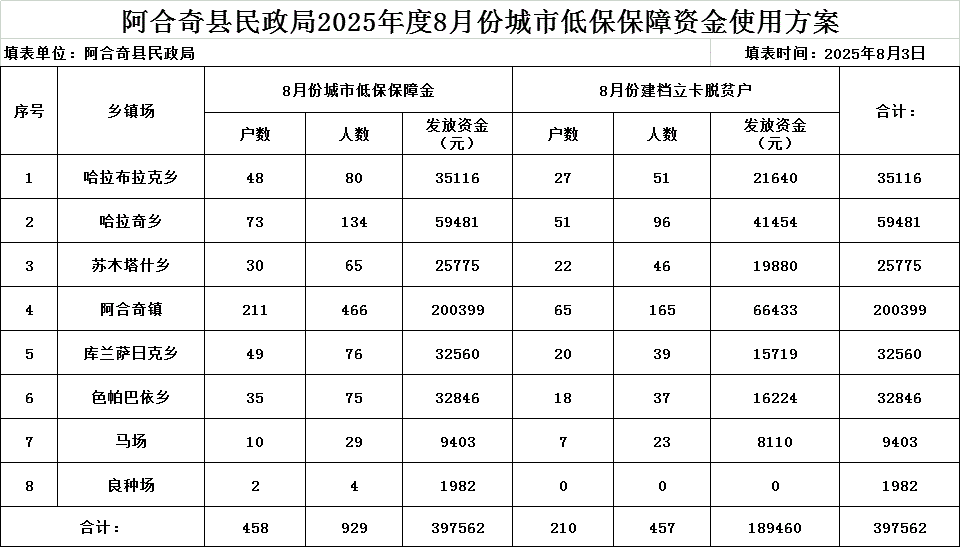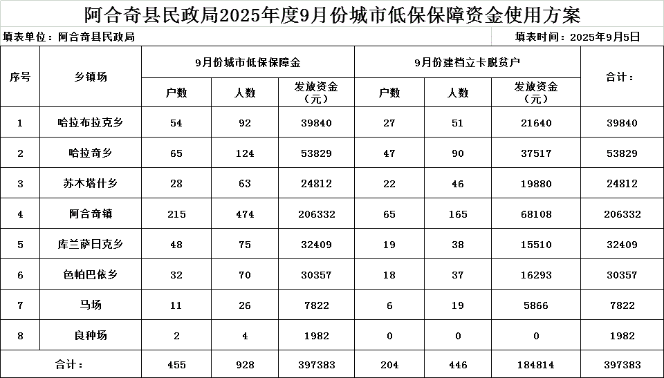 阿合奇县民政局2025年度7-9月份城市低保保障资金使用结果