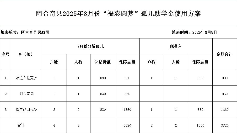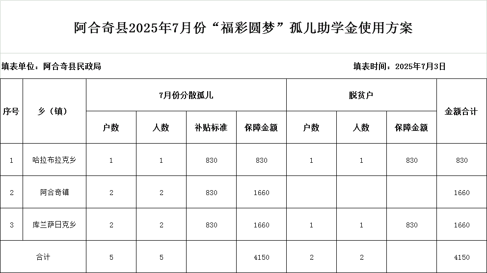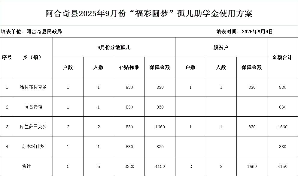 阿合奇县2025年第三季度“福彩圆梦”孤儿助学金使用方案