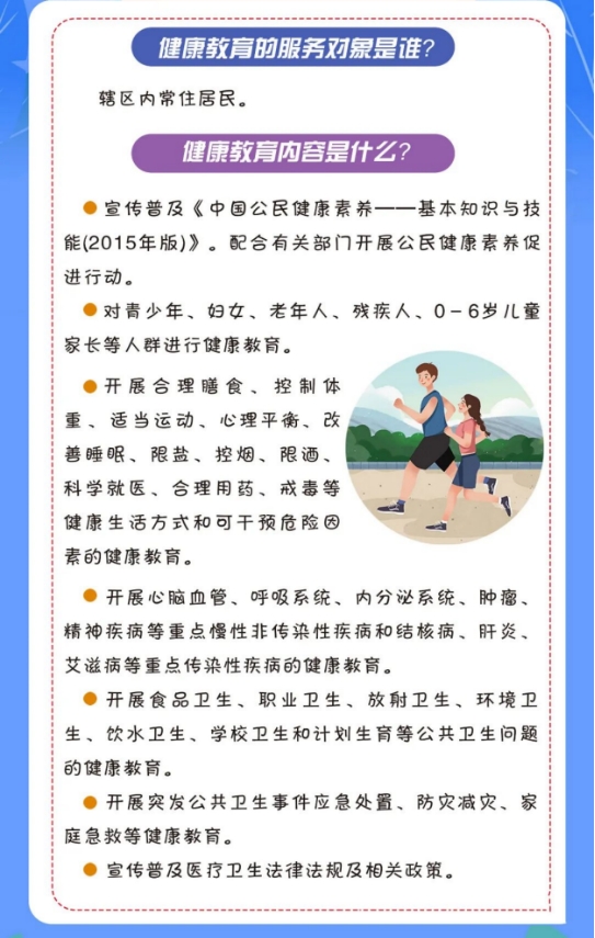 凡是辖区内的常住居民,包括居住半年以上的户籍及非户籍居民均可以享受健康教育服务。