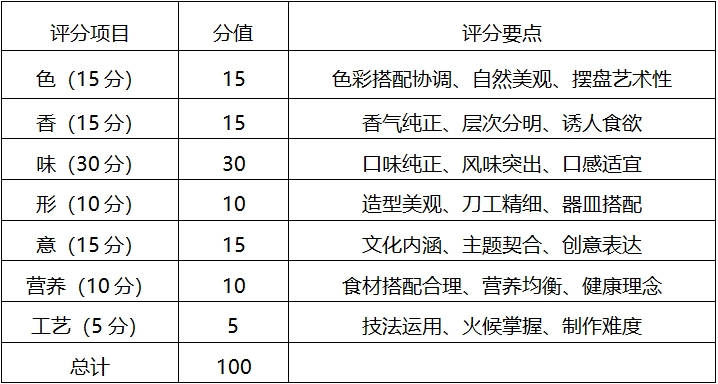 3.可选附加项目(加分项,限1项):特色面点/创意甜品/养生汤品等(参赛选手自定)。