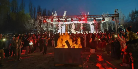 主舞台民谣悠扬,场地中央篝火熊熊。与当地群众、远方游客欢聚一堂,跳起热情的舞蹈,品尝地道的柯尔克孜族美食。四周点缀的“星光帐篷”氛围感十足,这里是年轻灵魂的交汇点,是边疆春夜最动人的注脚。