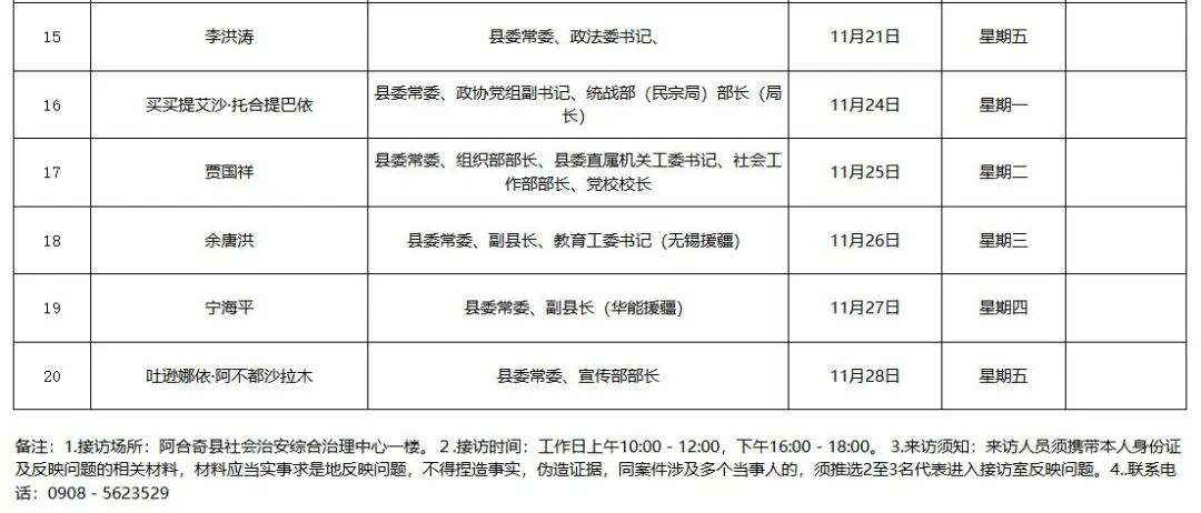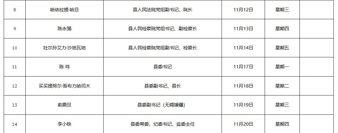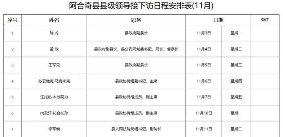 点击查看!阿合奇县县级领导接下访日程安排表(11月)