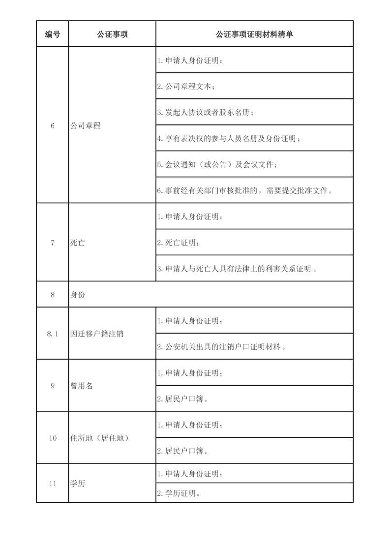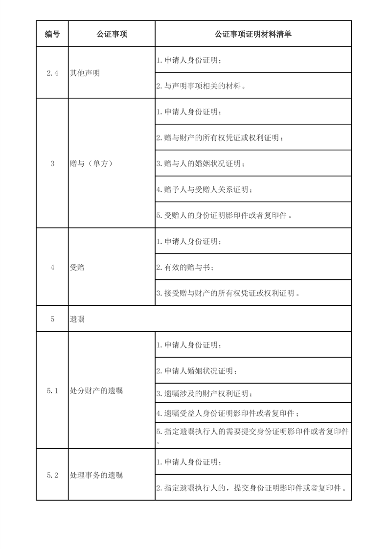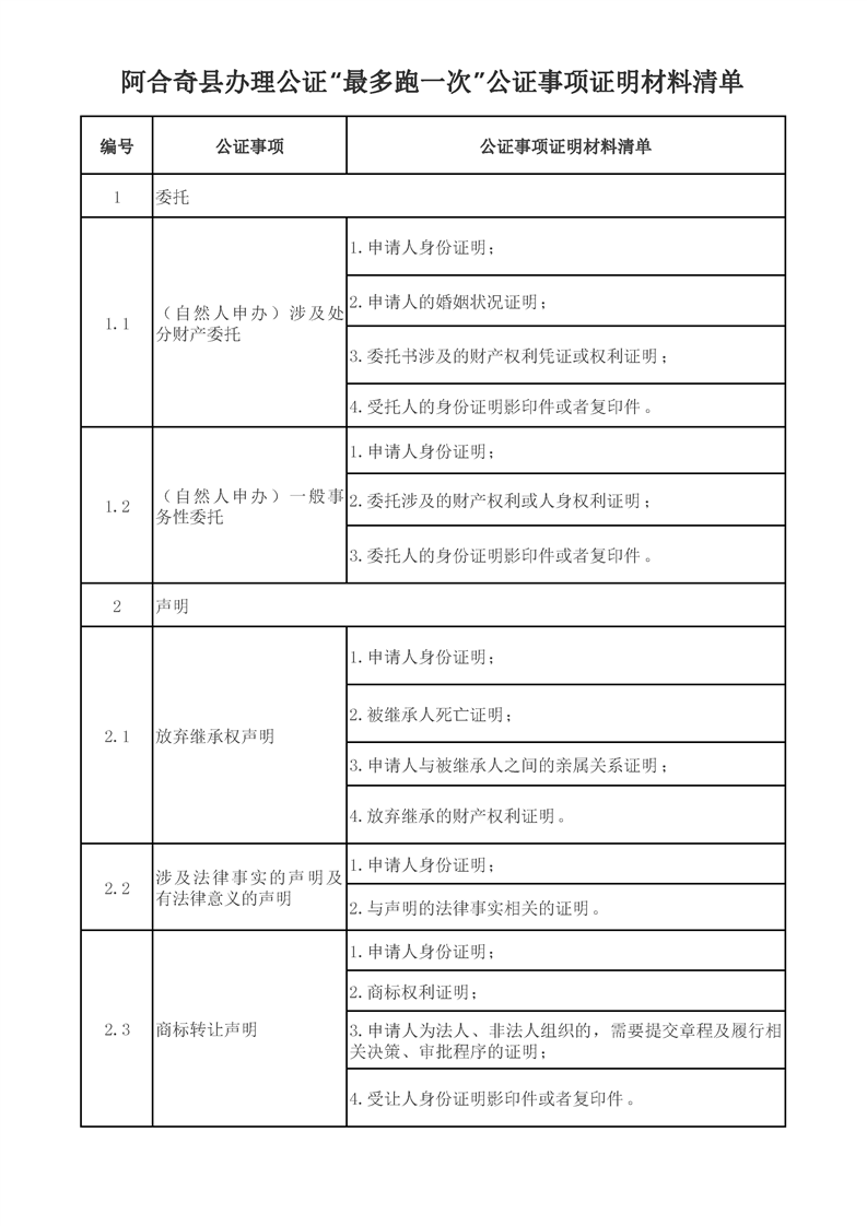阿合奇县办理公证“最多跑一次”公证事项证明材料清单
