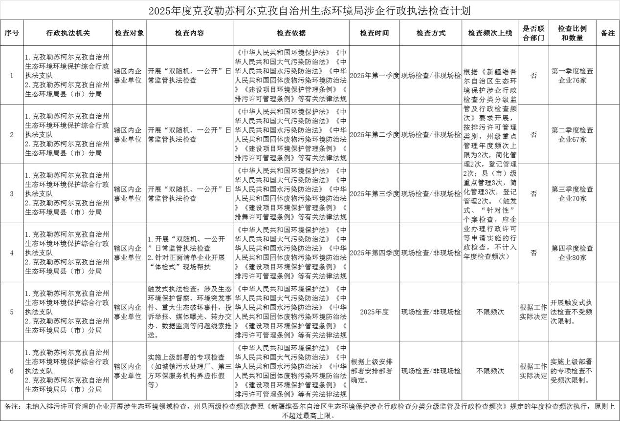 2025年度克州生态环境局阿合奇县分局涉企行政执法检查计划