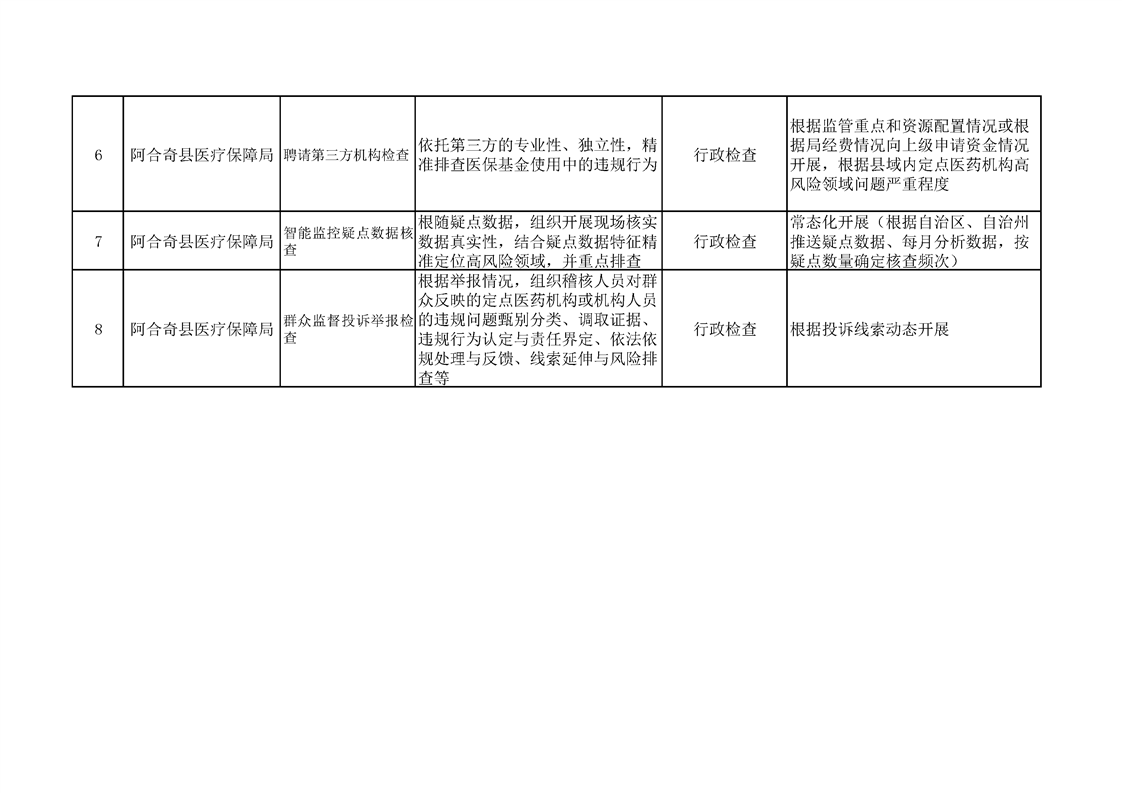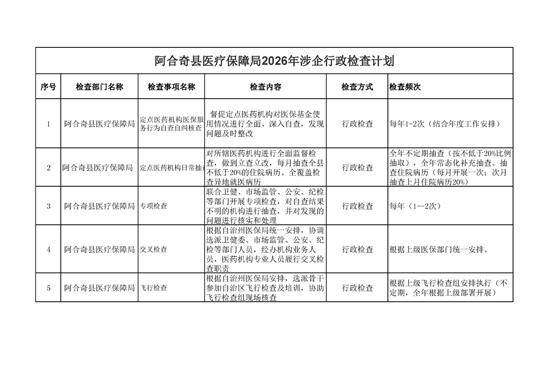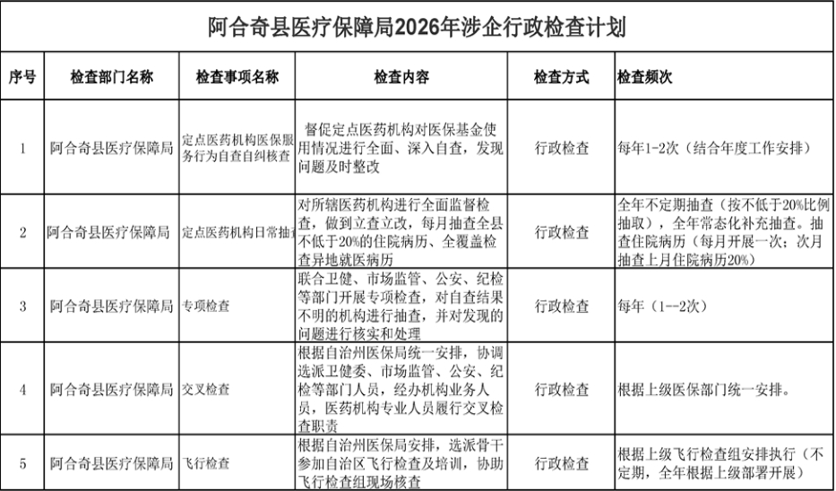 阿合奇县医疗保障局2026年涉企行政检查计划