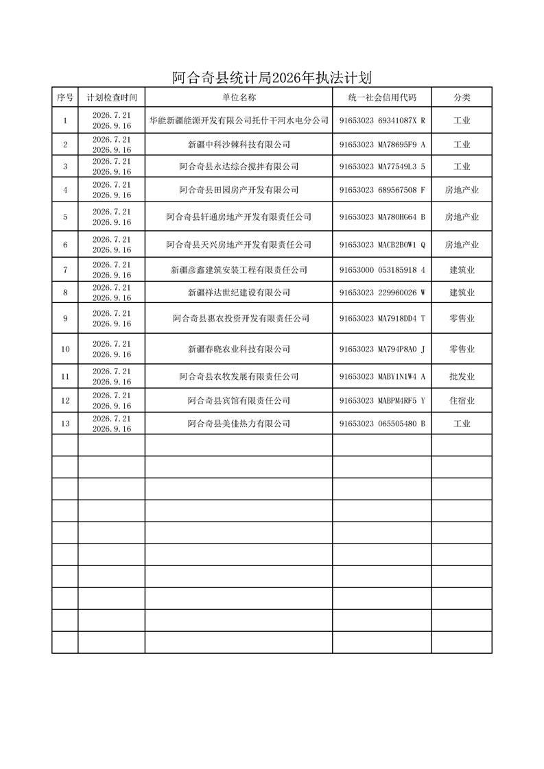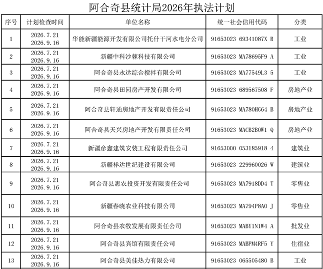 阿合奇县统计局2026年执法计划