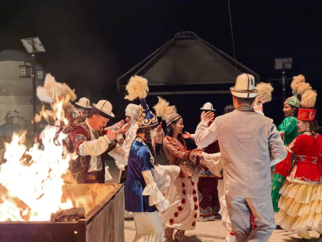 晚上:享用特色晚餐后,若时间恰逢(10月3日晚20:30),可参与文旅局组织的“情聚阿合奇・篝火贺团圆”晚会(地点:县玛纳斯史诗馆)。在雪山明月之下,与当地民众共舞欢歌,感受别具风情的草原之夜。