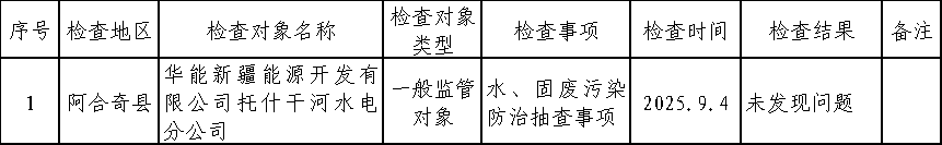 2025年9月份克州生态环境局阿合奇县分局生态环境执法“双随机、一公开”抽查结果信息公开表