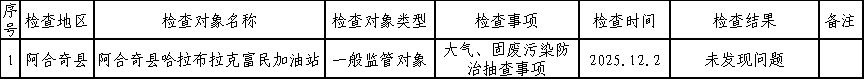 克州生态环境局2025年12月“双随机一公开”检查结果信息公示