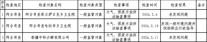 克州生态环境局2026年2月“双随机、一公开”检查结果信息公示