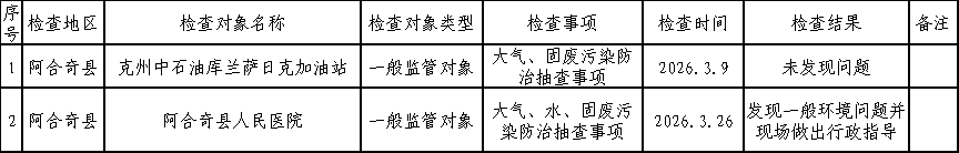 克州生态环境局2026年3月“双随机、一公开”检查结果信息公示